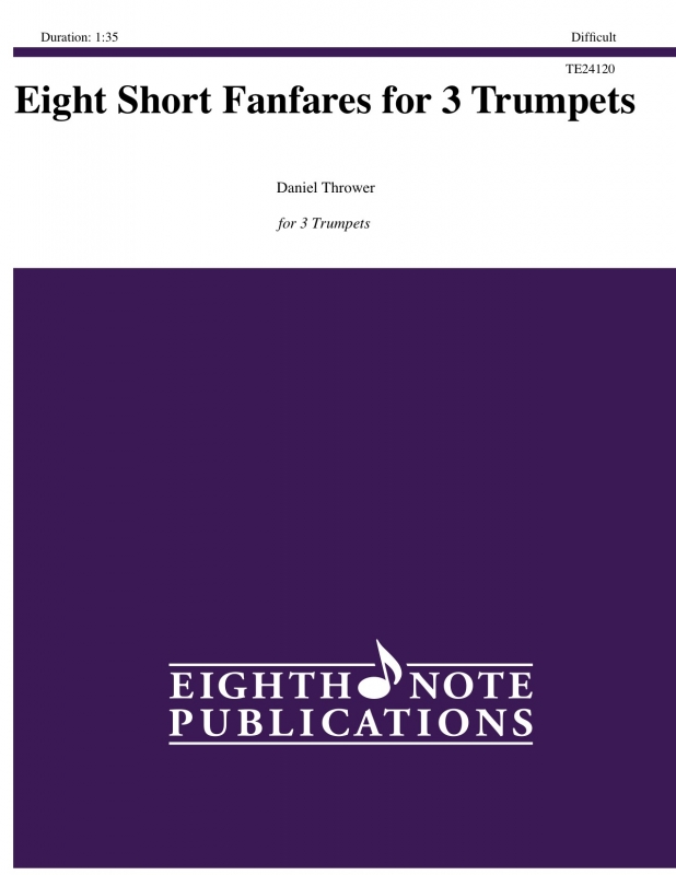These eight short fanfares, for 3 trumpets, were written as a result of my fascination with historical instruments. They were a type of exercise in composing for the limited medium of natural trumpets, though they lay well on modern instruments. There is a good variety of "affects" from fanfare to fanfare, making their usefulness plentiful. Since they are all short, they come in very handy for award banquets, or any event that could be spruced up by an ornate announcement or two.