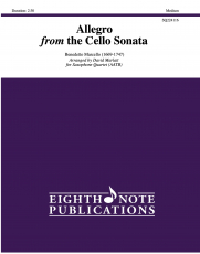 2024 This arrangement is a movement from the Cello Sonata in G. It has been set for an alto solo with the remainder of the quartet in a supporting role. Flashy sounding scales (in an easy key) make this solo sound harder than it is. This is a perfect feature for the soprano in the group while essentially giving the remainder of the ensemble a break with very light playing and lots of rest.
