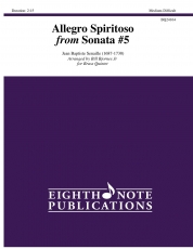 The Allegro Spiritoso is a movement taken from Jean-Baptiste Senailles Sonata No. 5 in D minor, which was originally written as a solo for violin. This particular work by Senaille regained popularity when it was recorded as a piccolo trumpet solo by Maurice Andre. This arrangement is in A minor and features the euphonium or trombone in a brass quintet setting.